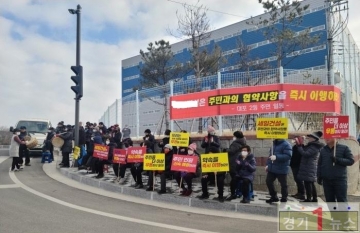- 2일, 마을 주민들 S 건설 신축 물류창고 앞 ... 주민 협약사항 "즉시 이행하라" -