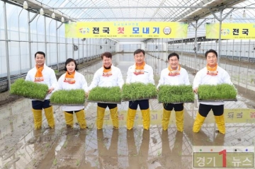 이날 행사에는 이천시의회 의원 6명을 비롯한 김경희 시장과 권혁준 호법농업협동조합장 등 50여 명이 이천시 호법면 소재 240평 규모의 연동 하우스 시설에서 전국 첫 모내기를 진행했다.