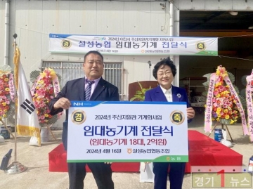 [이천=경기1뉴스] 한철전 기자= 이천시는 16일 설성농업협동조합 농기계센터에서 농기계임대 사업의 일환인 주산지 일관기계화 사업의 추진을 위한 임대농기계 전달식을 개최했다고 밝혔다.